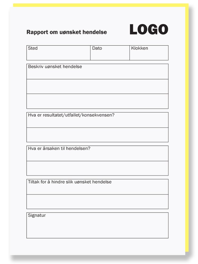 Gratis skjema for registrering av uønskede hendelser i PDF