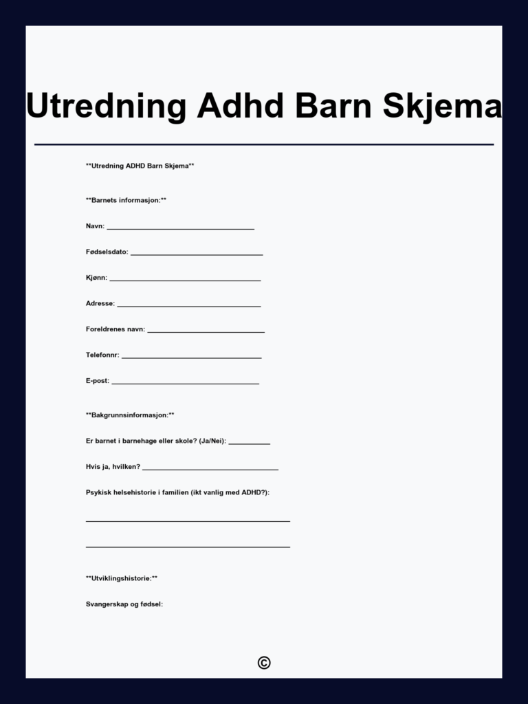 Last ned gratis opplegg med eget skjema for ADHD-utredning. Få veiledning om legens funksjonsvurdering og hvordan du sikrer en inkluderende prosess. Enkel og nyttig ressurs.