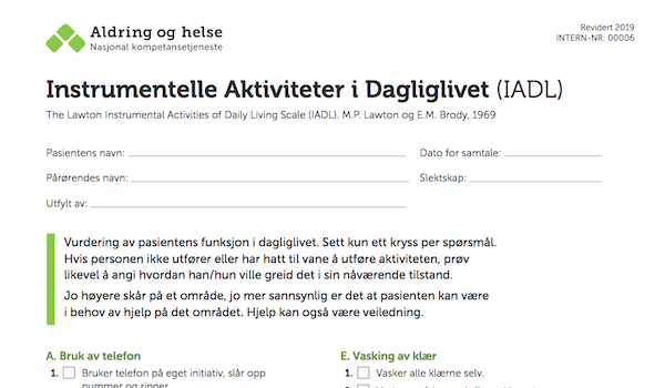 Gratis ADL skjemaer i PDF