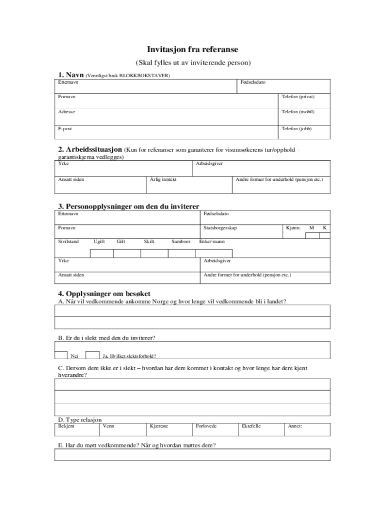 Last ned gratis invitasjonsskjema enkelt og trygt. Utfylles og signeres av inviterende person, som et alternativ til brevinvitasjon. Les viktige tips før nedlasting.